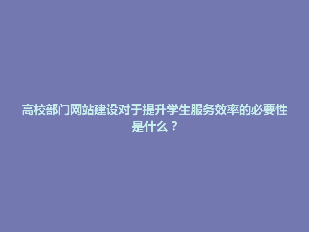 普定县高校部门网站建设对于提升学生服务效率的必要性是什么?